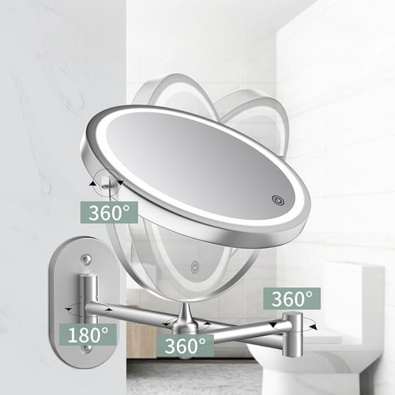 Rechargeable LED Makeup Mirror With Wall Mount And Touch Control