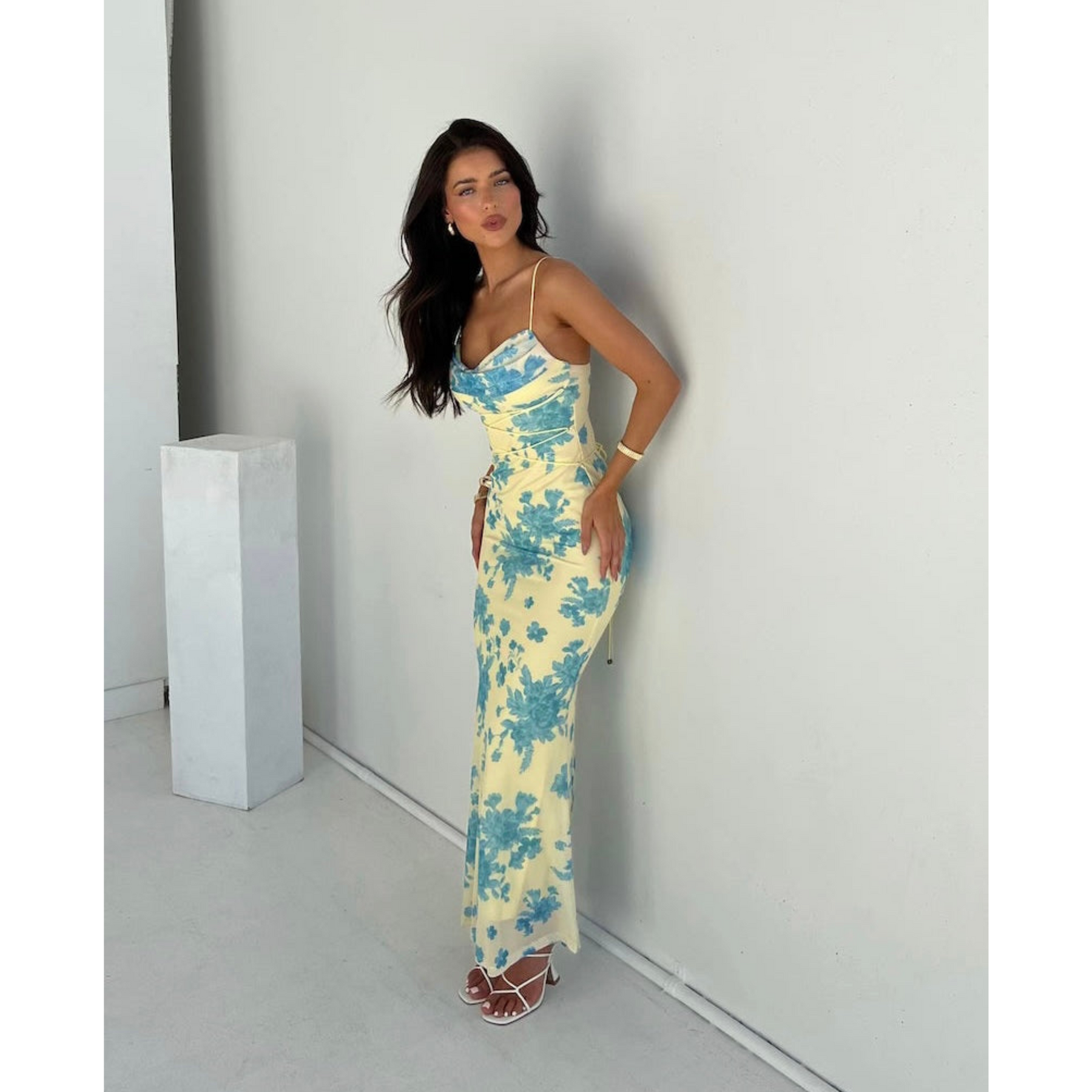 This floral maxi dress combines a flattering silhouette with delicate design details to bring elegance to any occasion. Whether worn to a summer event or styled casually, it’s a timeless addition to your wardrobe.