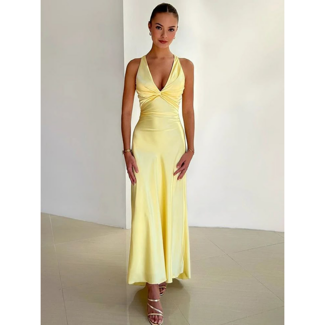 Women’s Satin Maxi Dress | Elegant Halter for Wedding and Evening