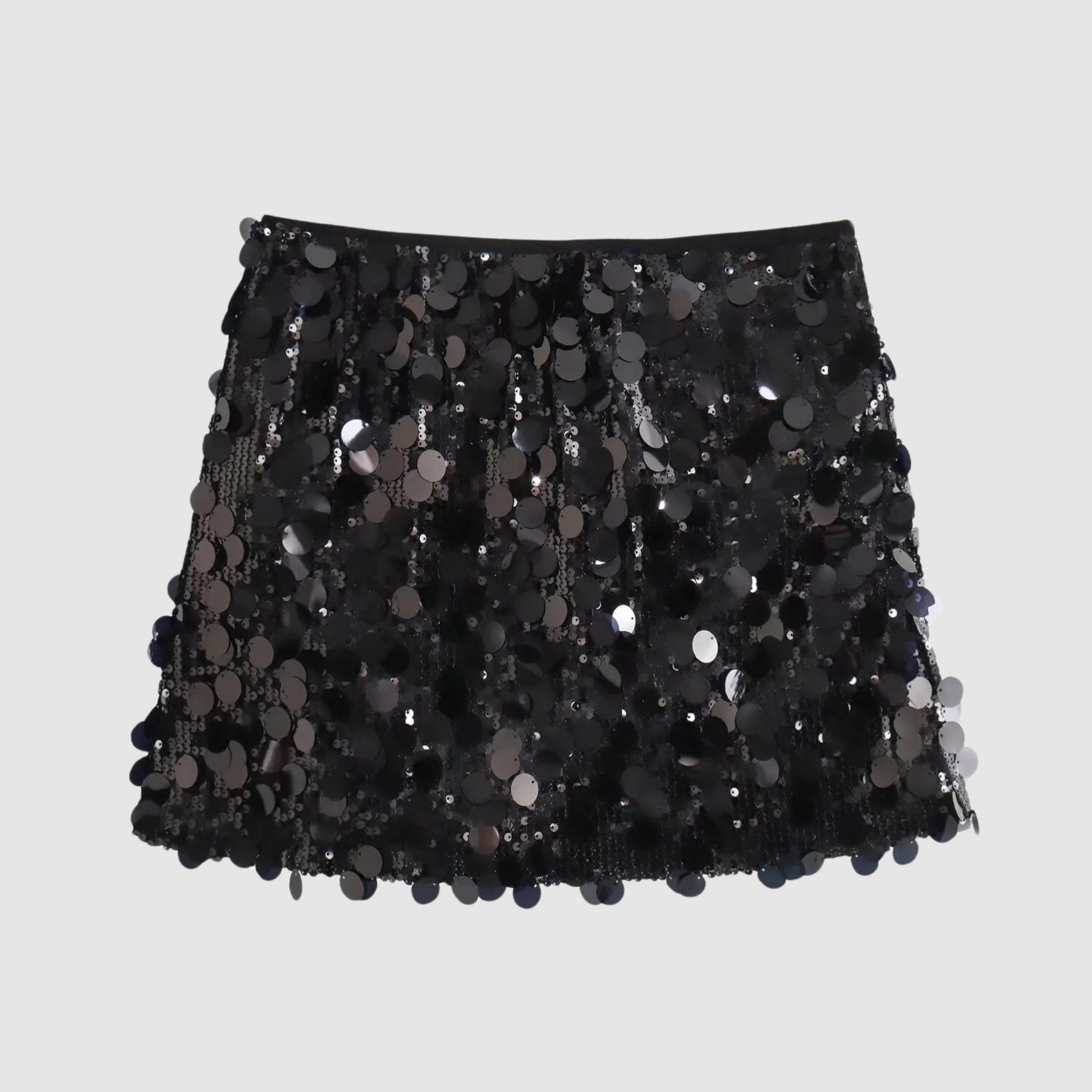 This women’s mini skirt features an eye-catching sequin surface that adds visual impact to evening and occasion looks. The straight cut creates a clean outline, making it easy to style with fitted tops, blouses, or statement footwear.